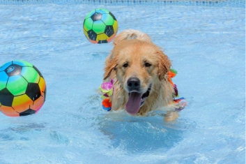 Nos dias quentes, seu cão pode se refrescar e se divertir em nossa piscina. É uma ótima maneira de mantê-los felizes e confortáveis enquanto desfrutam da água.