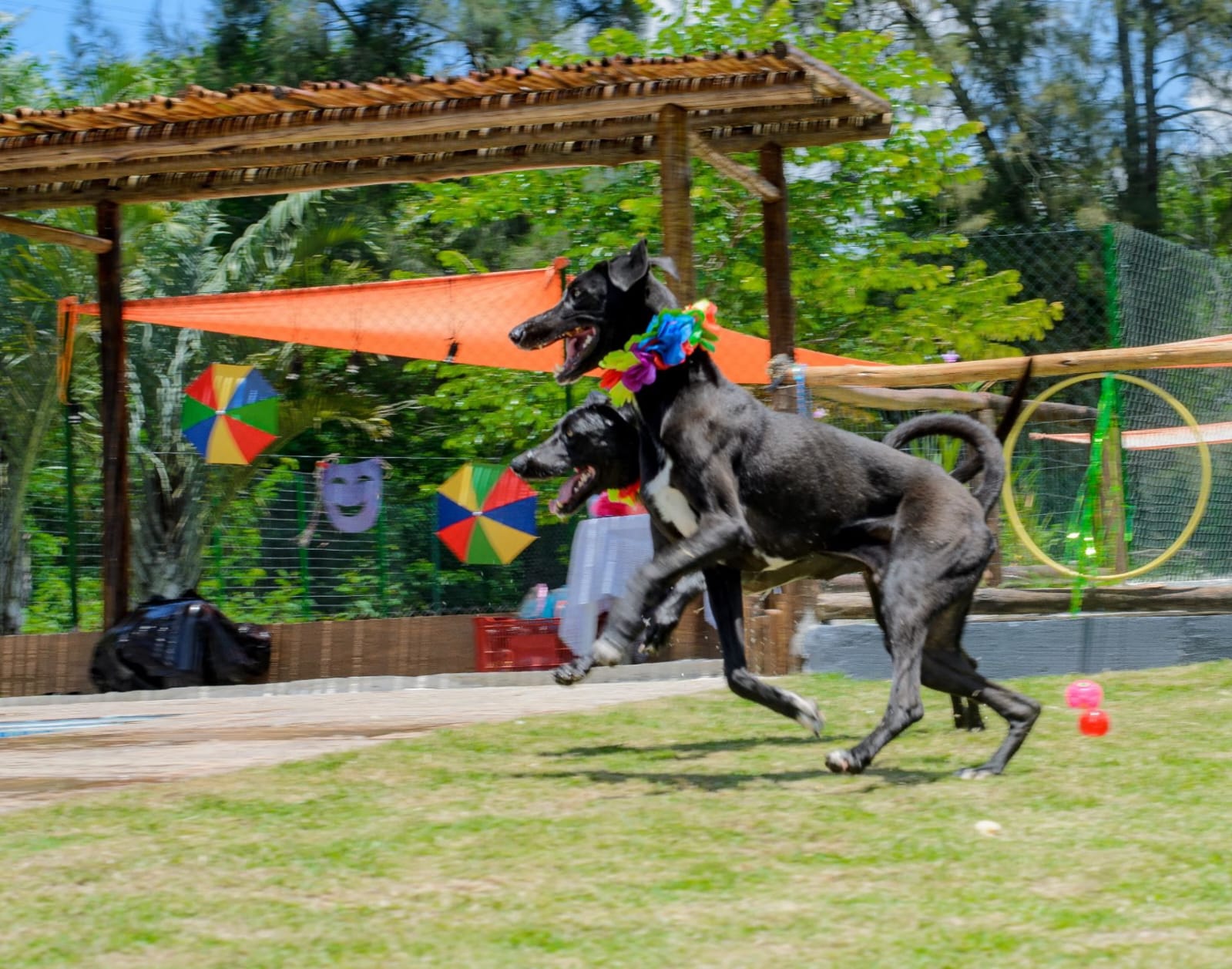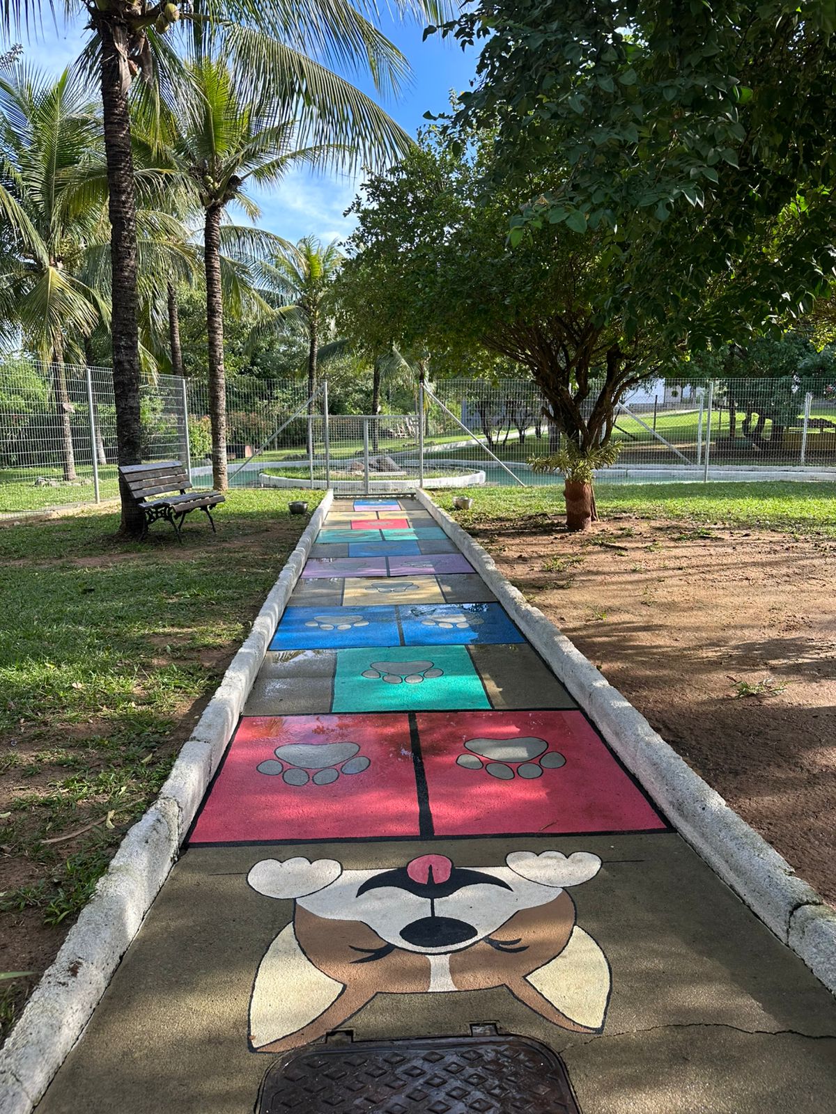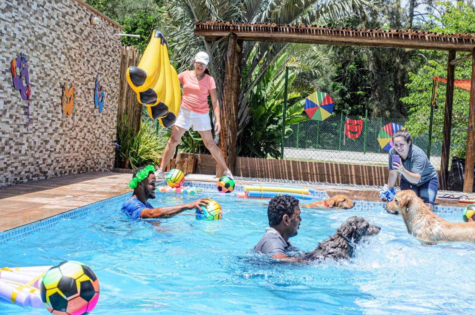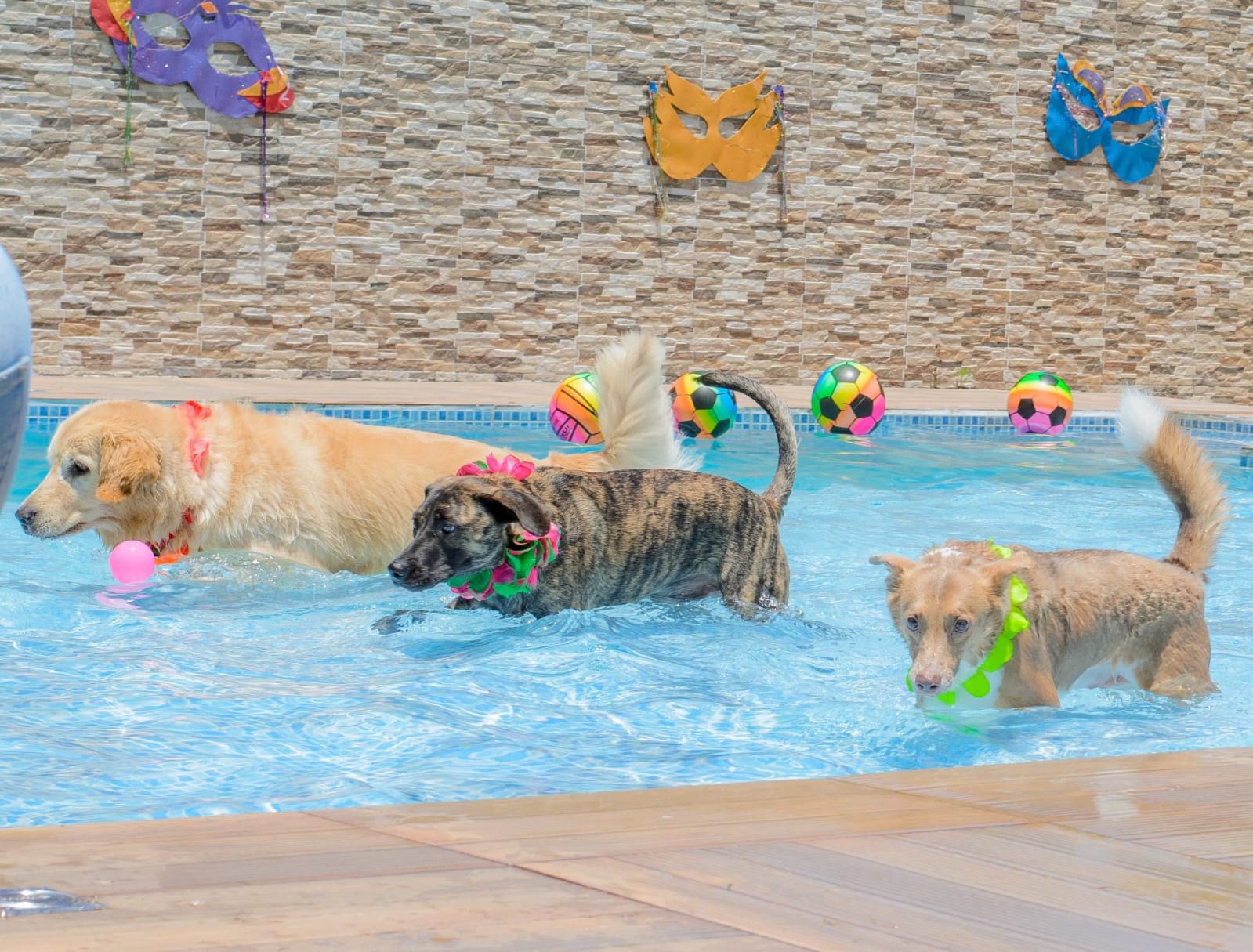 Imagine um espaço cercado por verde, com áreas planas para correr à vontade, e uma piscina enorme com lâmina d’água e raia para natação — perfeita para os peludos que amam água! Aqui, o tédio passa longe: nosso espaço é planejado para estimular física e mentalmente cada cãozinho, respeitando seu ritmo e personalidade.